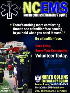 Call in the Squad! Posted on September 8, 2016September 8, 2016 by North Collins EMS Welcome to the North Collins Emergency Squad! We invite you to check back often and visit as we add content and introduce you to our new recruitment theme: Be a Familiar Face! Thanks for stopping by. We’re on the way. Share this: Click to share on X (Opens in new window) X Click to share on Facebook (Opens in new window) Facebook Like Loading... Related Published by North Collins EMS View all posts by North Collins EMS